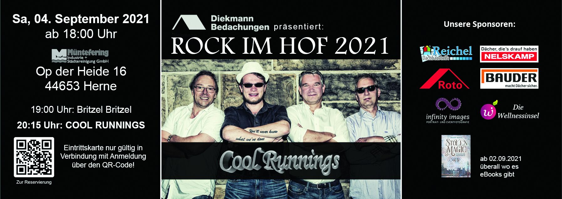 Am 04. September wird gerockt – COOL RUNNINGS und BRITZEL BRITZEL als Special Guests laden ein zum "Rock im Hof" zu Gunsten von Schattenlicht e.V. auf dem Betriebsgelände der Firma Heinrich Müntefering GmbH, Op der Heide 16, 44653 Herne.