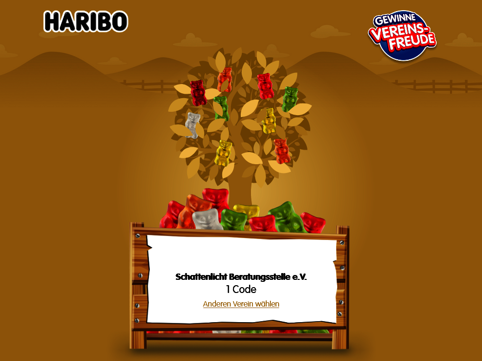 Hier könnt Ihr ganz schnell + einfach den Code eingeben: https://vereinsfreude.haribo.com/