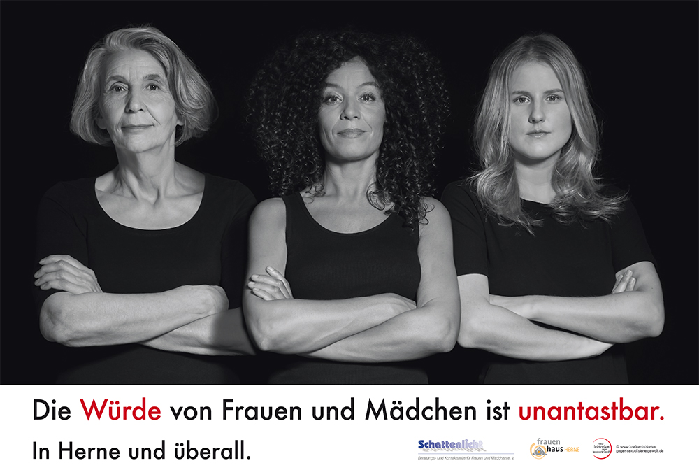 Selbst in den wenigen Tagen, die die Kampagne bisher in Herne läuft, haben auch wir schon viele positive Rückmeldungen bekommen – die starke und würdevolle Darstellung von Frauen verschiedenen Alters fasziniert und begeistert. Und wir hoffen, dass sie auch viele inspiriert und ermutigt, sich nicht alles gefallen zu lassen. Und dass sie alle, Frauen wie Männer, daran erinnert: die Würde von Frauen und Mädchen ist unantastbar. In Herne und überall.